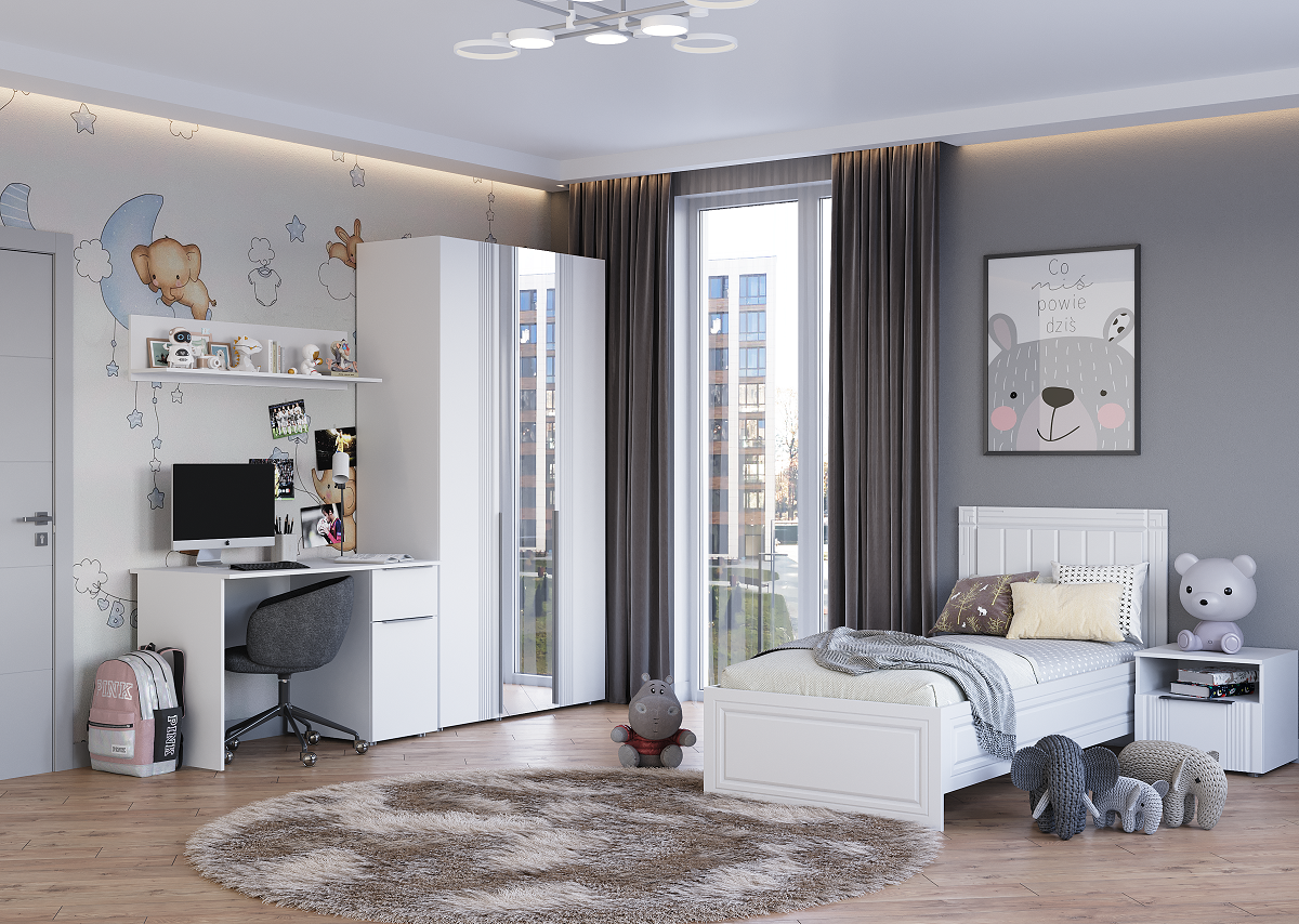 Модульная детская Вита (Белый лофт/Софт айс)