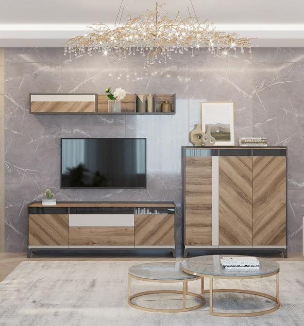 Мебель в гостиную изготавливается из материалов с тиснением натурального дерева, которое
