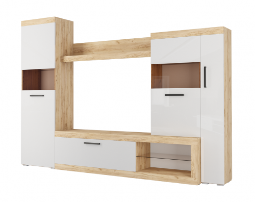 Описание Гостиная Бастон (Дуб вотан/Белый гладкий)