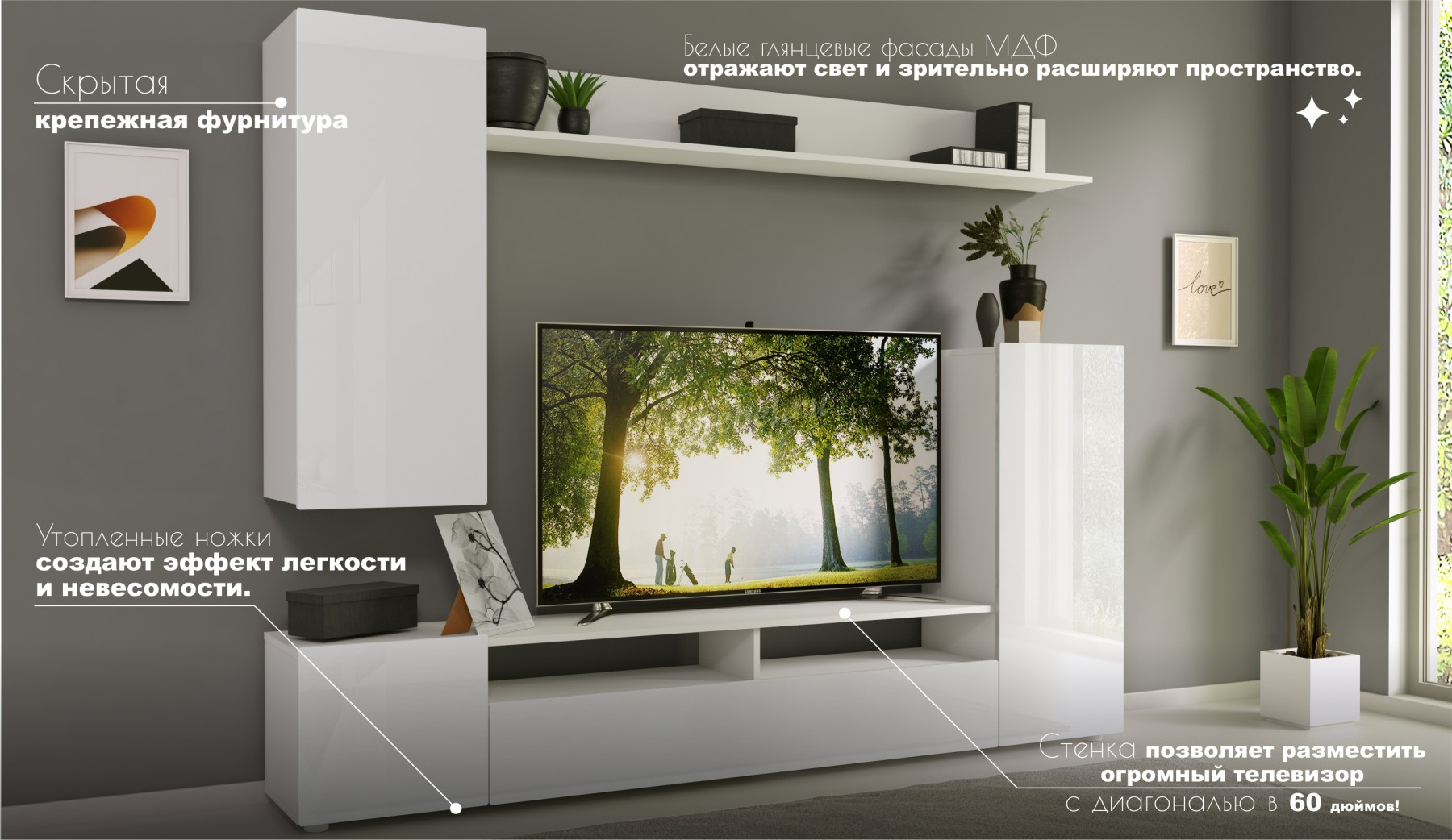 Гостиная Лия (Белый/Белый глянец) наличие товара: