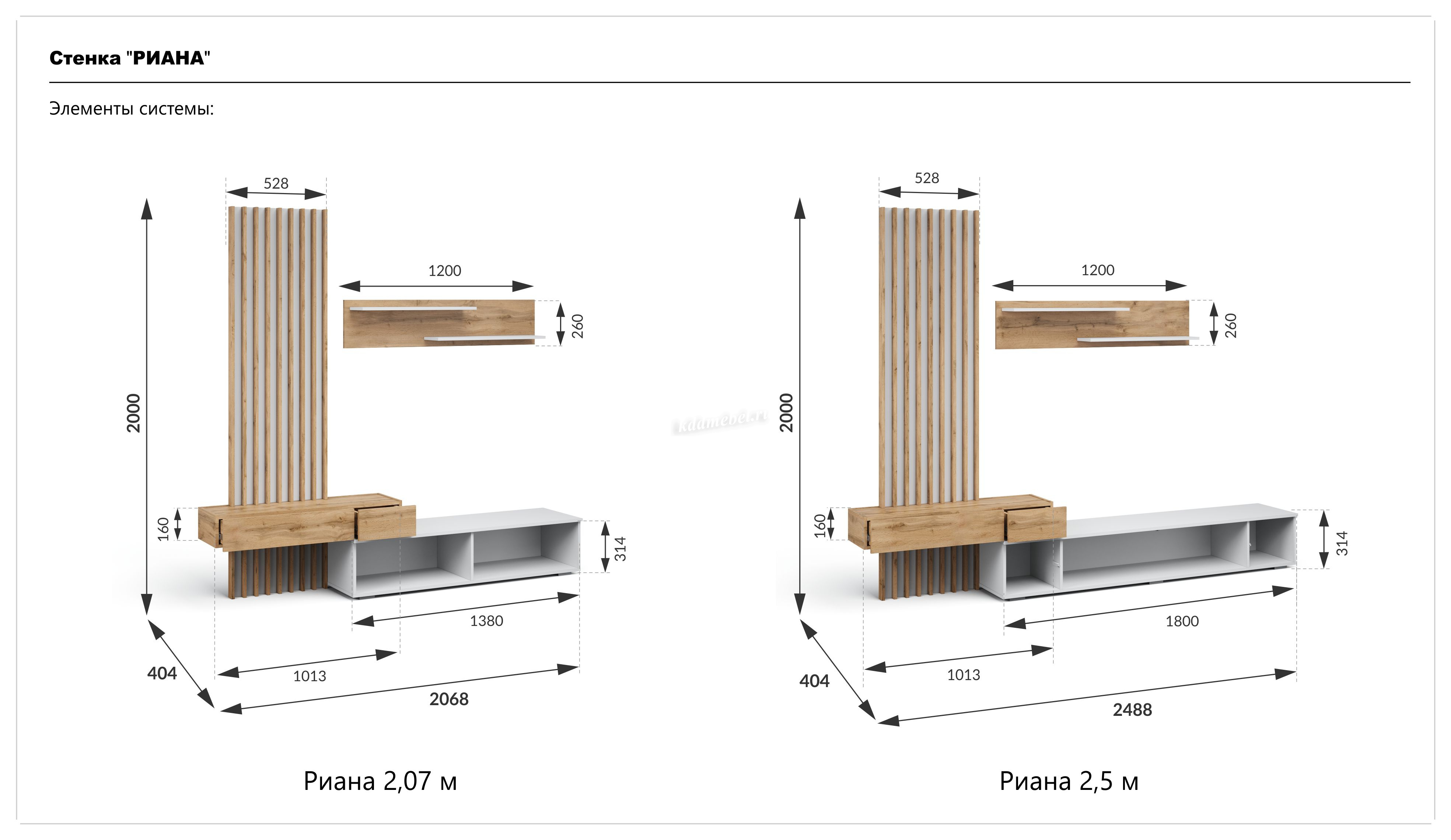Описание Гостиная Риана Вайт 2.07 (Вотан/Белый)
