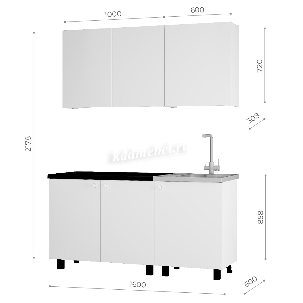 Кухня Алиса Мини 1,0 комп №1 (Белый/Дуб сонома)