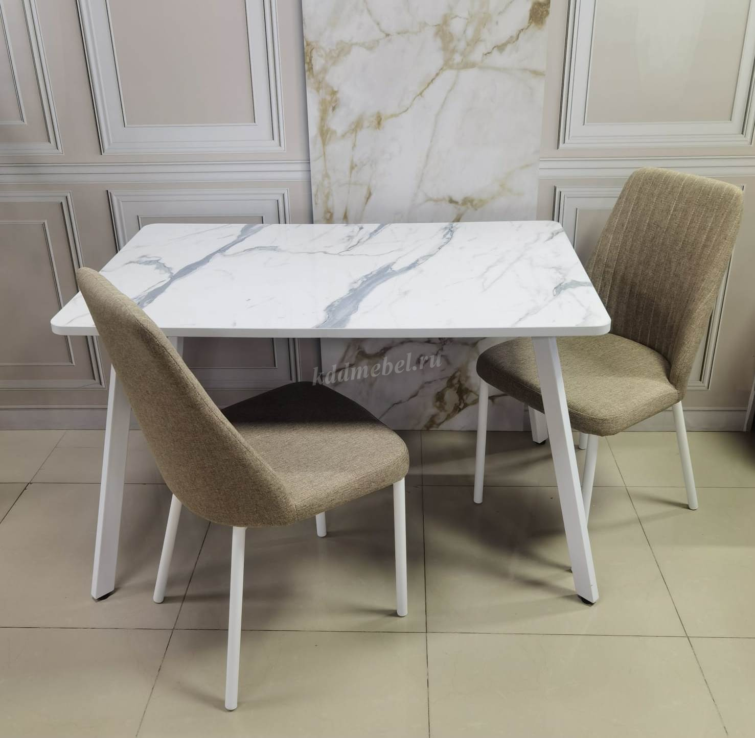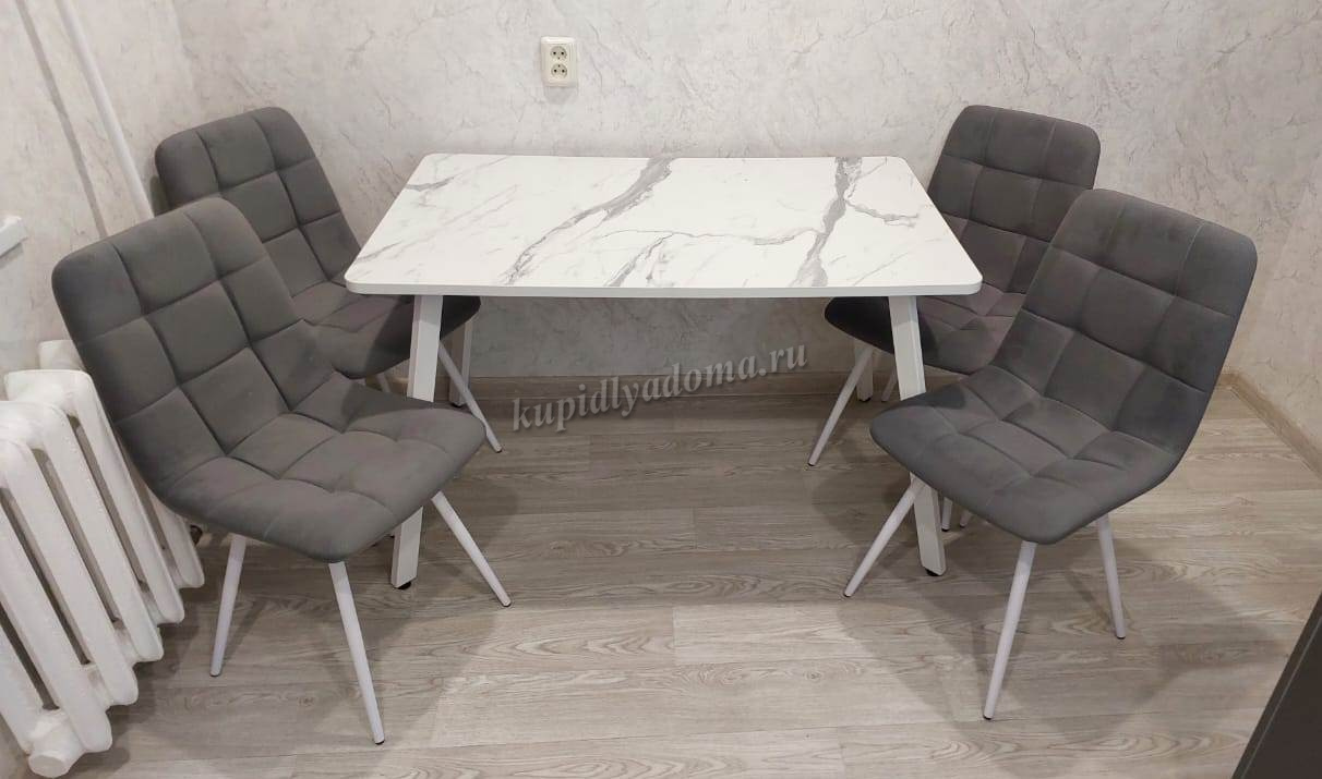 Стол обеденный Берген 2 кат. (Опора Белый матовый/Столешница Мрамор белый 3027) наличие товара: