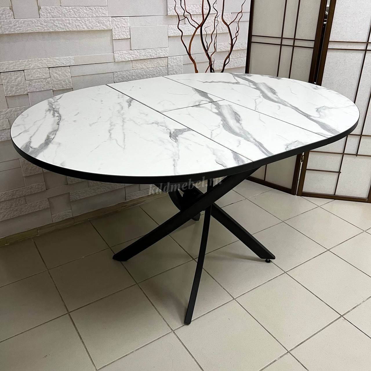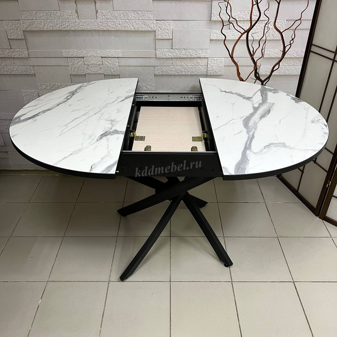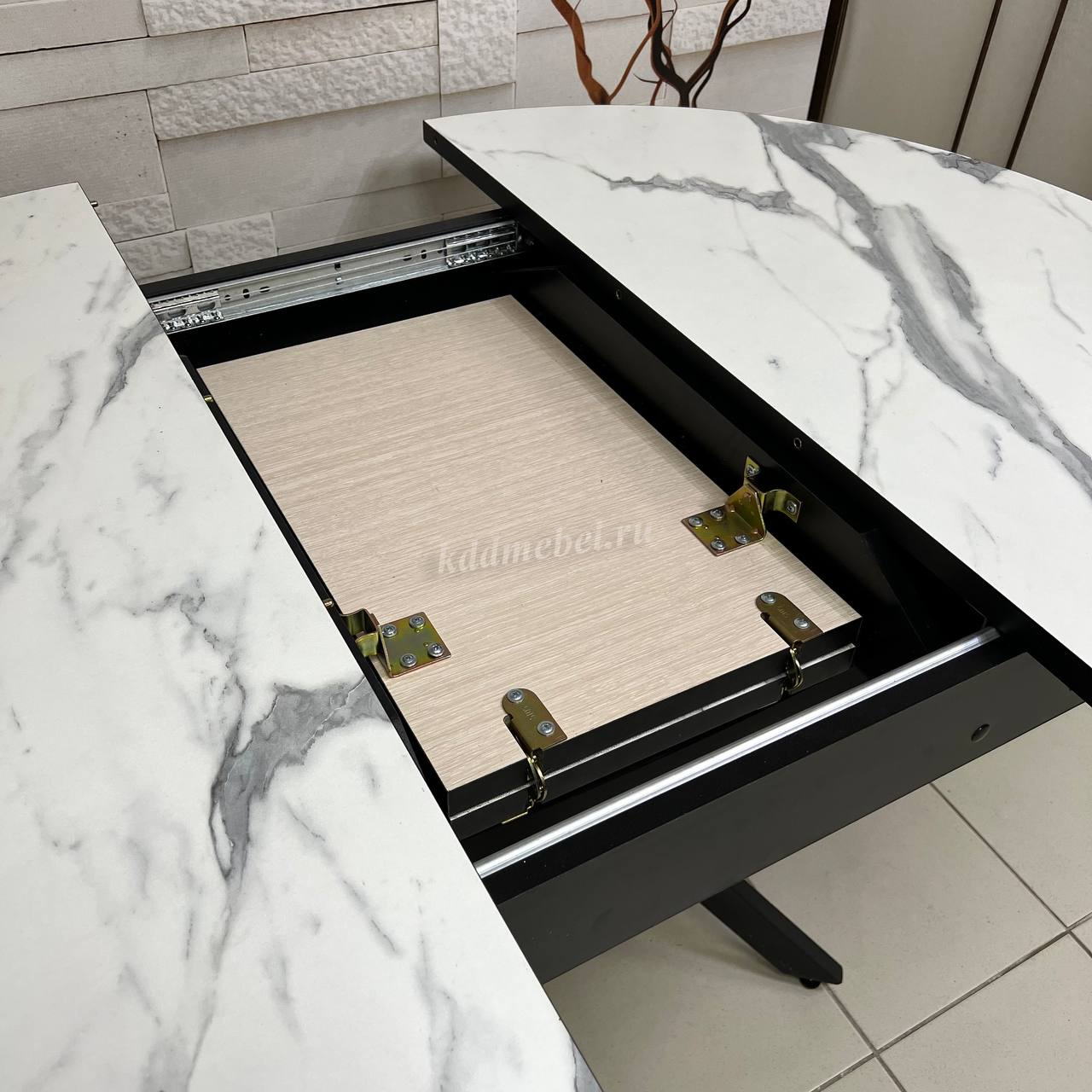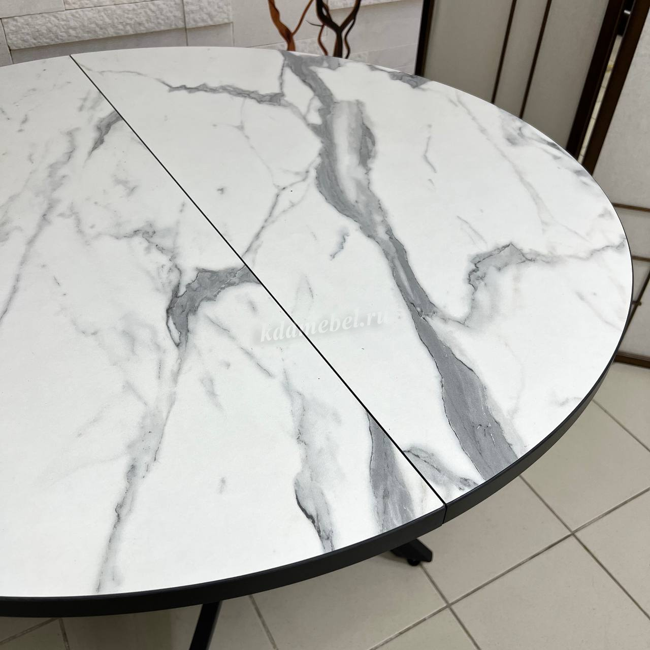 Стол обеденный раздвижной пластик Арчи (Белый мрамор 3027/Опоры черные) наличие товара: