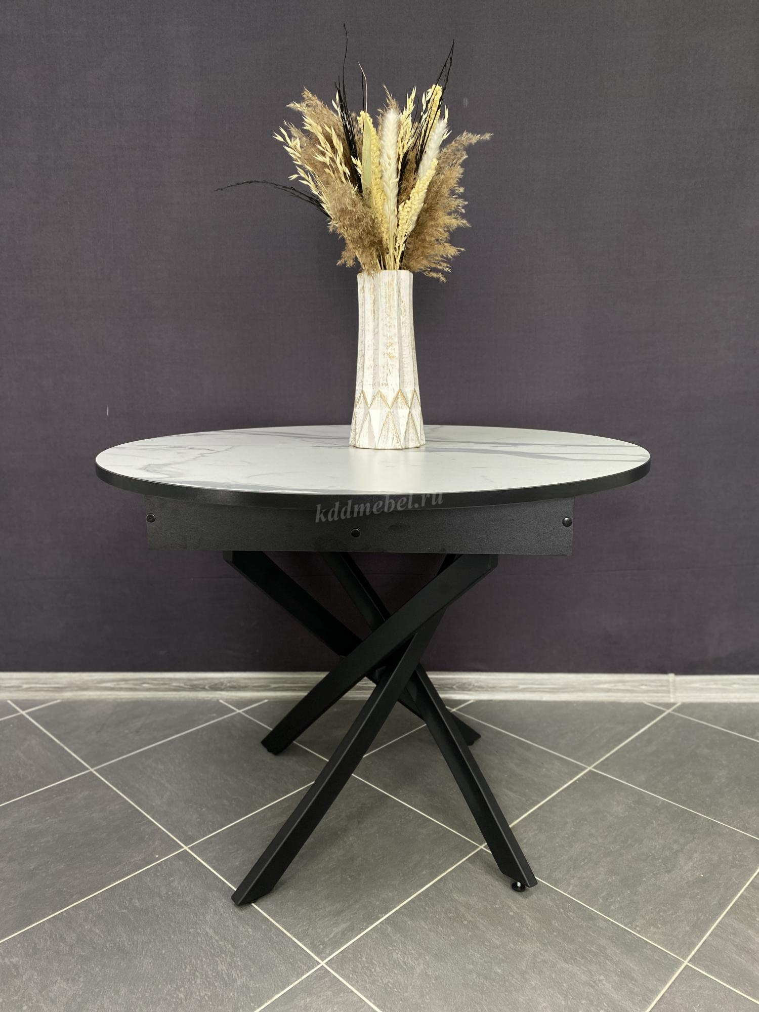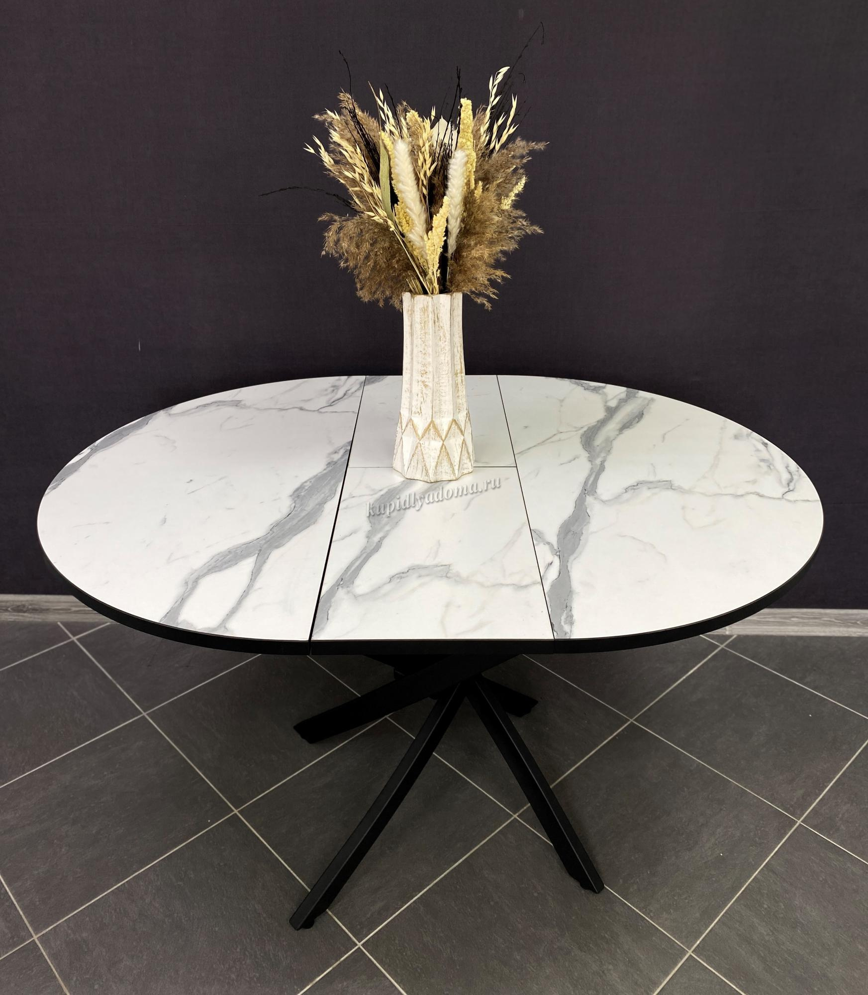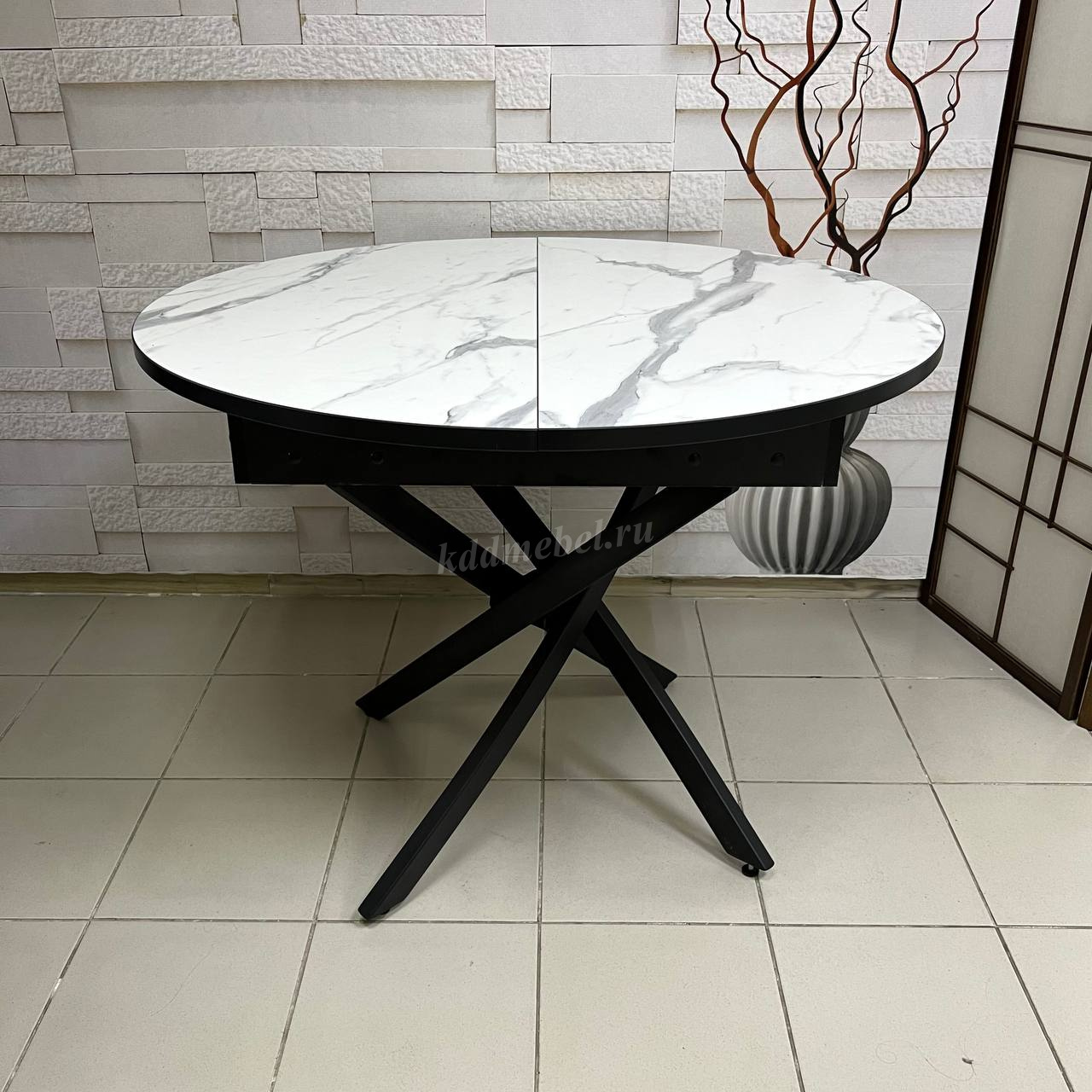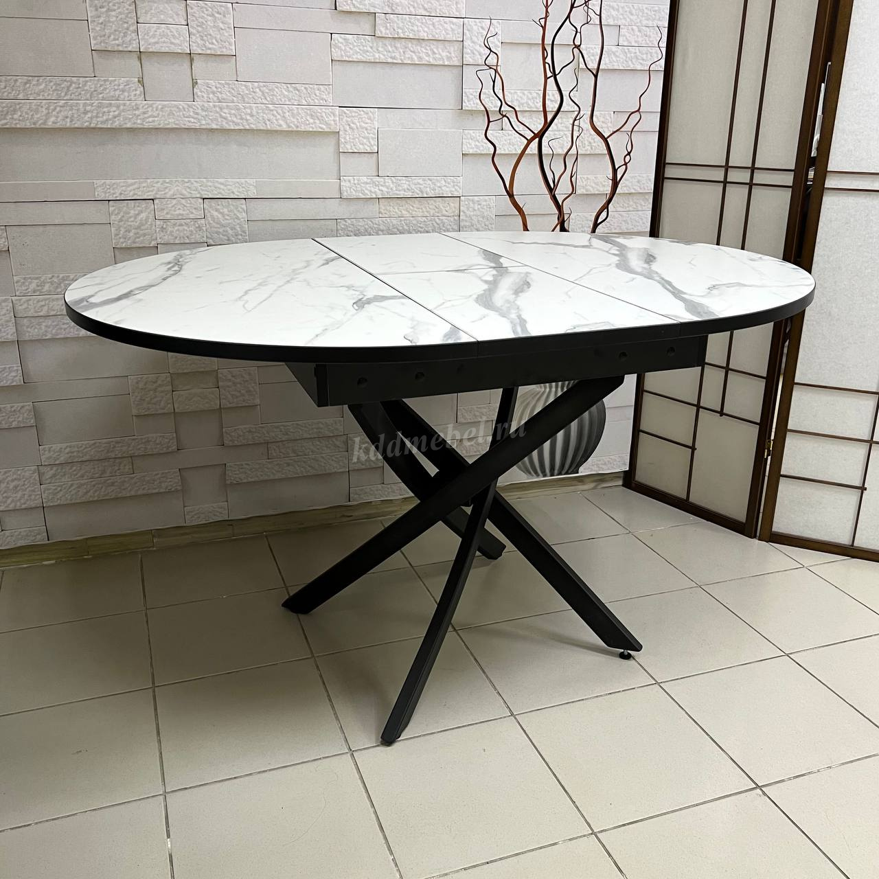 Стол обеденный раздвижной пластик Арчи (Белый мрамор 3027/Опоры черные) наличие товара: