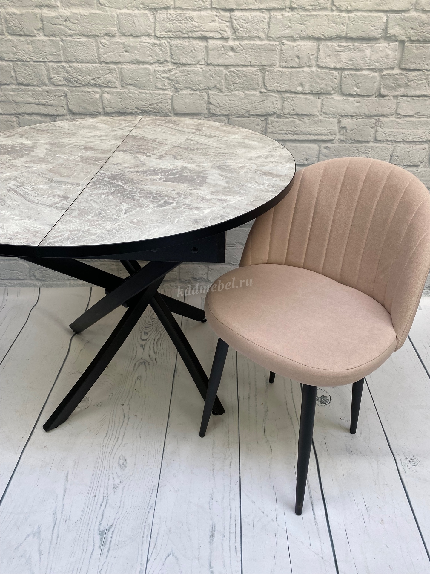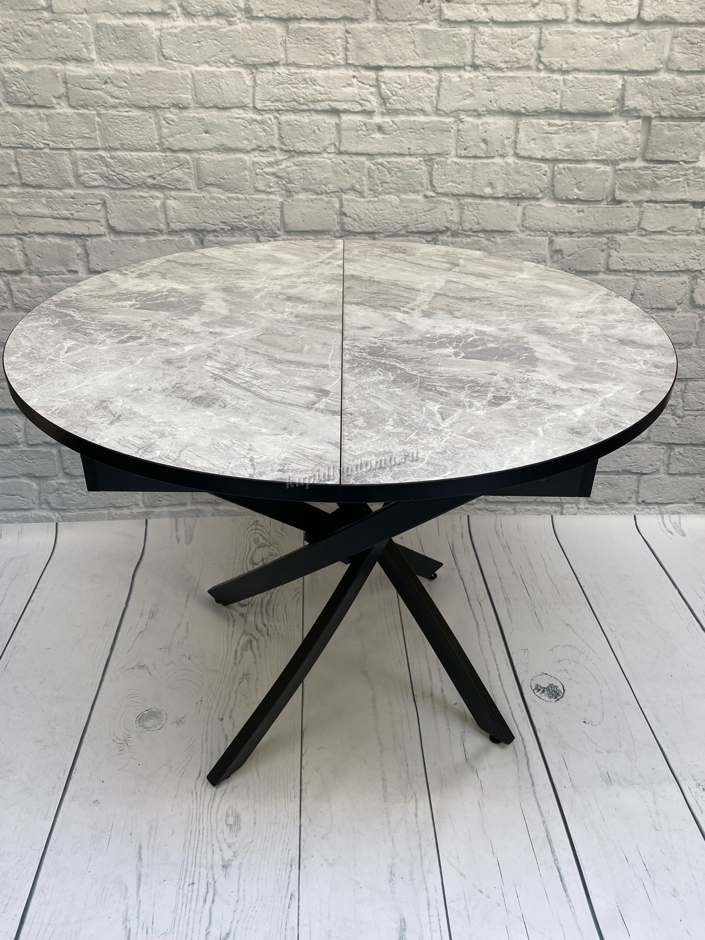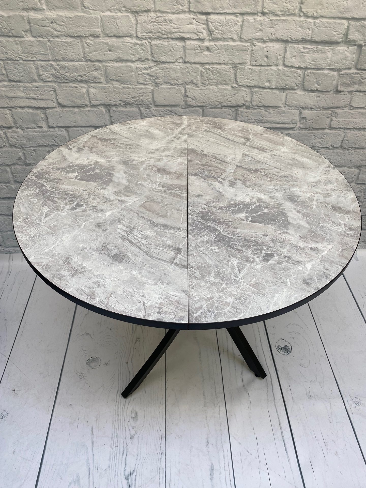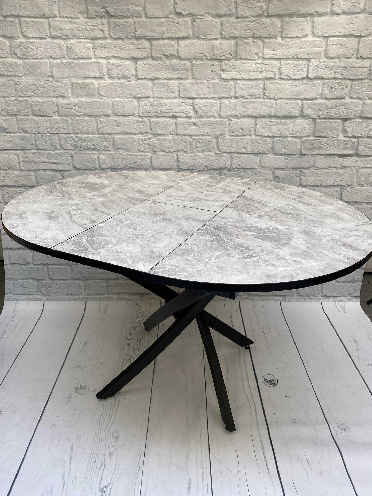 Стол обеденный раздвижной пластик Арчи (Тасос срез камня 109/Опоры черные) наличие товара: