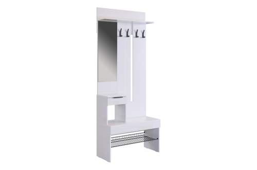 Изготовленная из прочного ЛДСП толщиной 16 мм, прихожая "Баско" гарантирует долговечность и надежность. Зеркало, встроенное в конструкцию, добавляет визуального пространства и позволяет быстро оценить свой внешний вид перед выходом. Крючки для одежды обеспечивают удобное место для размещения верхней одежды и аксессуаров, а выкатной ящик предоставляет дополнительное пространство для хранения мелочей. Сетчатая полка для обуви позволяет аккуратно разместить обувь, обеспечивая вентиляцию и легкий доступ.