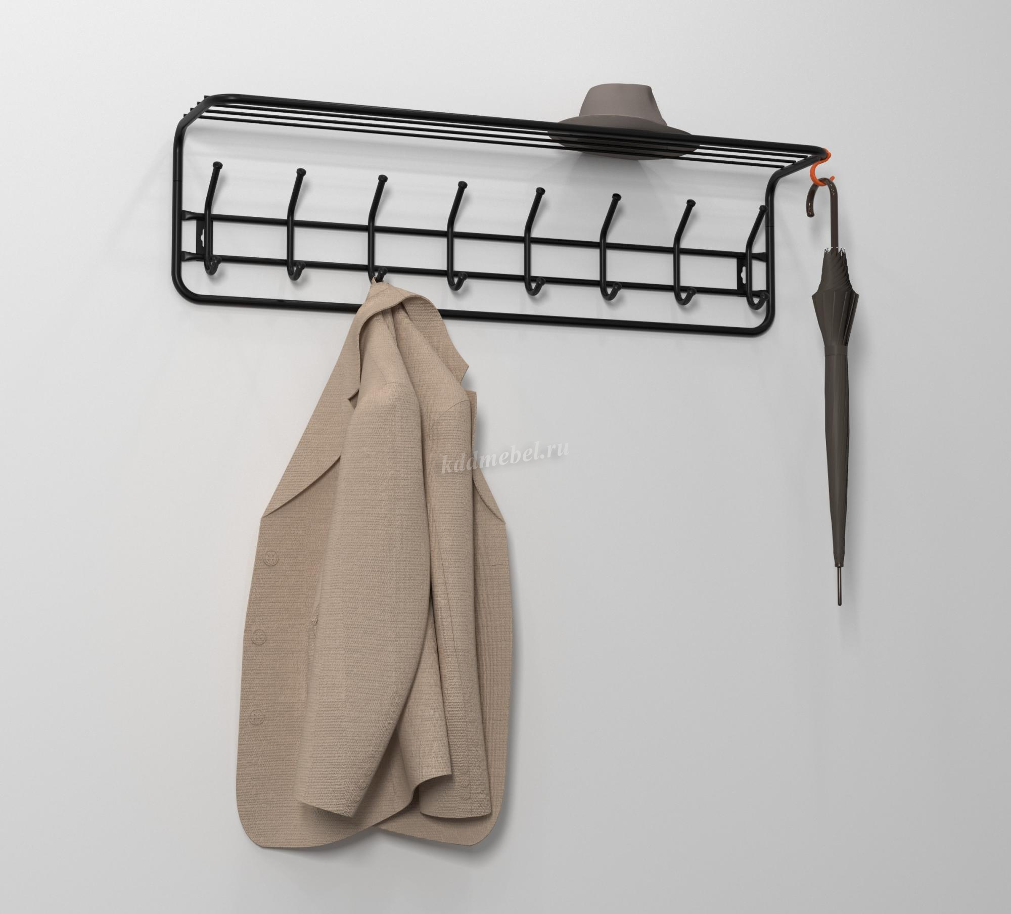 Настенная вешалка с удобной полочкой идеально подойдет для жилых и офисных помещений. Модель поможет удобно хранить не только верхнюю одежду, но и головные уборы.