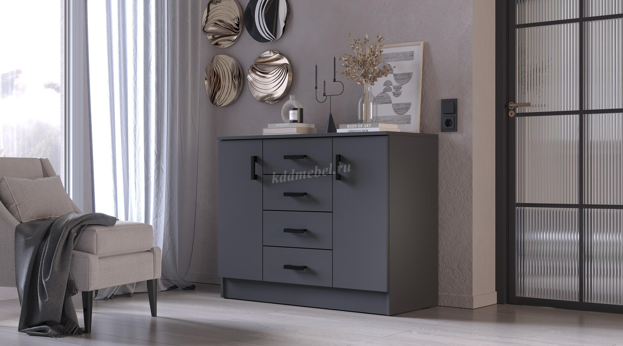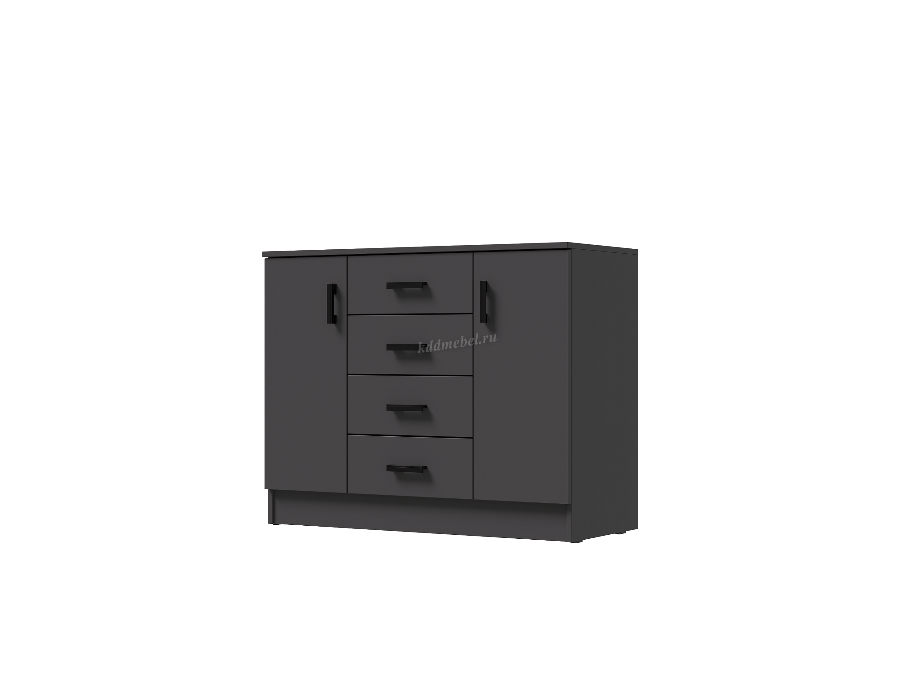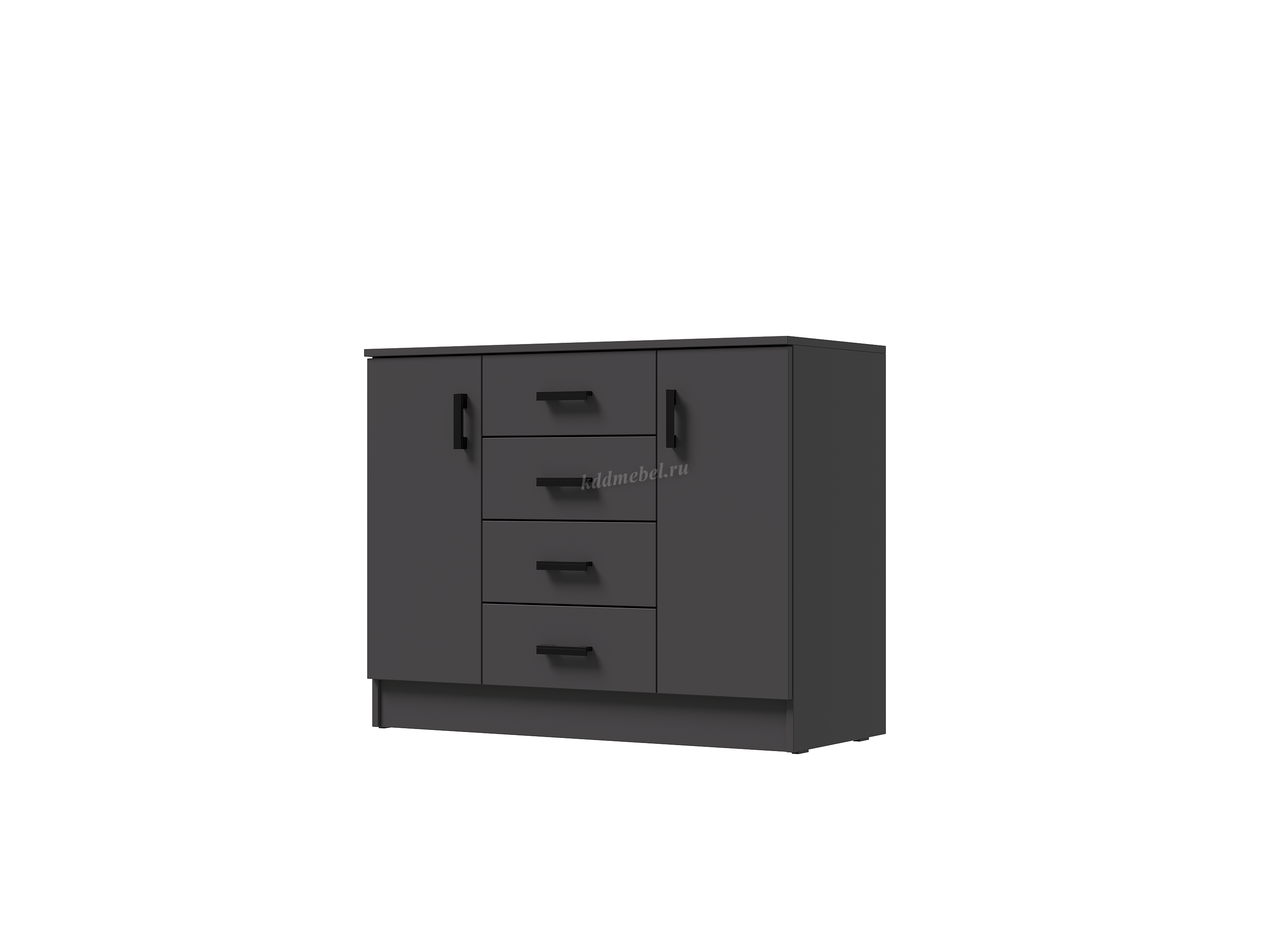 Имеет четыре выдвижных ящика и вместительные ниши за распашными дверцами.