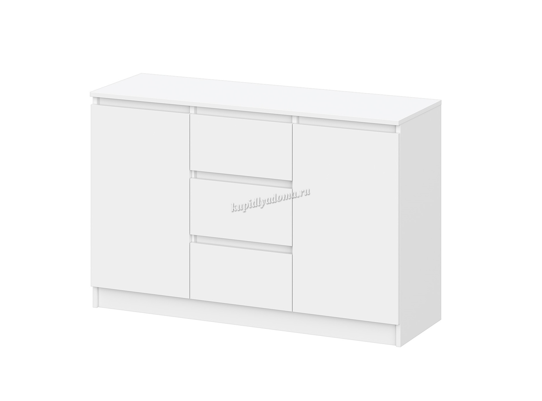 Комод с тремя ящиками и двумя дверками. За дверками по одной полке. Направляющие НПВ шариковые. Дверки и ящики без ручек. Выемка для открывания