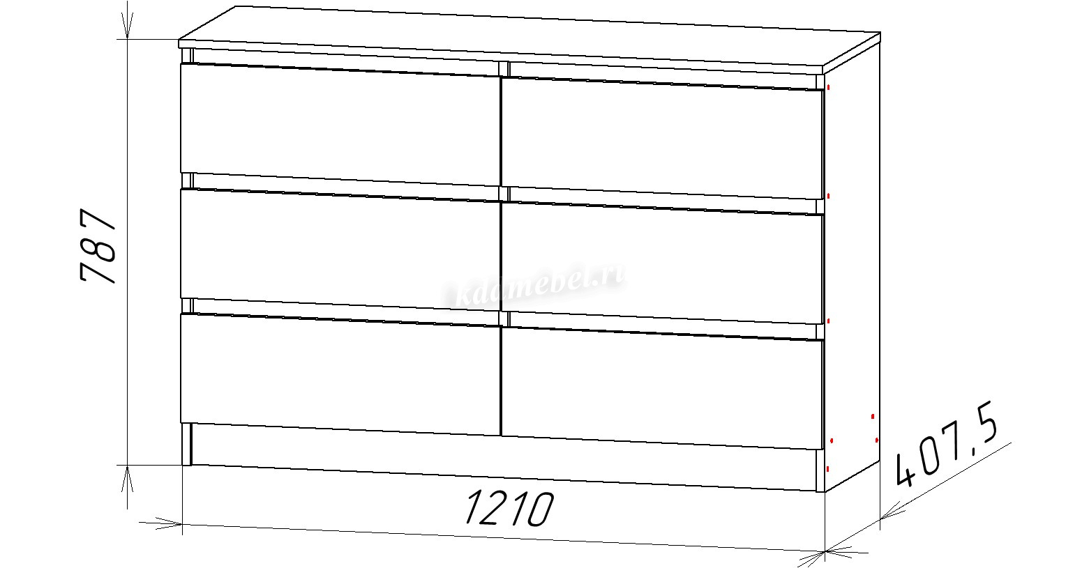 Комод с шестью ящиками. Направляющие НПВ шариковые. Ящики без ручек. Выемка для открывания