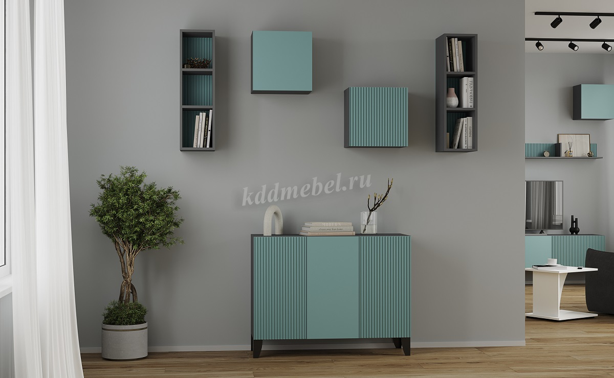 • Шкаф навесной Сириния (Серый графит/Бриз)
