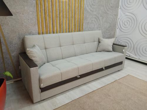 При трансформации требуется расстояние между диваном и стеной. Мебель является пристенной. Механизм «Книжка» прост и надежен в эксплуатации. Напольное покрытие в процессе раскладки не задействовано, Вы можете использовать пушистые ковры или дорогие паркеты. Емкость для хранения постельных принадлежностей с ламинированным основанием обеспечит Вам дополнительное пространство для хранения и сэкономит Ваше время при подготовке дивана ко сну. Ламинированное основание обеспечит простоту и удобство при уборке. Декоративные накладки из МДФ на подлокотниках и передней части короба, сочетают в себе представительность и элегантность, придают изящность дизайну