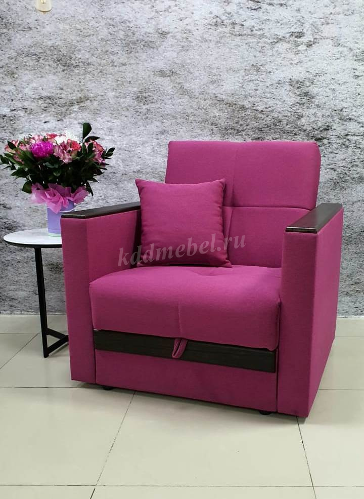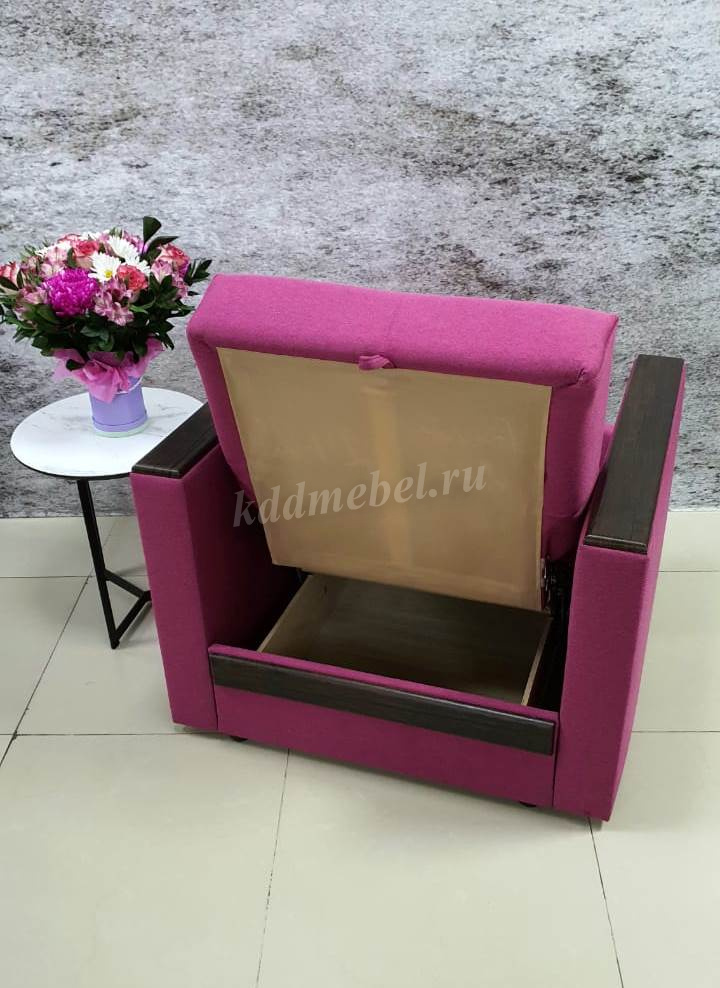 Каркас: изготовлен из хвойных пород древесины 1 сорта ГОСТ 8486-86 имеющих влажность 8-10% , фанеры березовой ГОСТ 3916.1-96, ЛДВП Настил мягких элементов: пружинный блок "BONNEL" Особенности: Кресло к комплекту мягкой мебели Бетти. Бюджетная модель, имеет большой короб для постельных принадлежностей. Подлокотники оснащены МДФ цвета "венге". Подушка включена в комплект. Если к разложенному креслу подставить пуф, то образуется спальное место. Пуф преобретается отдельно. г. Екатеринбург.