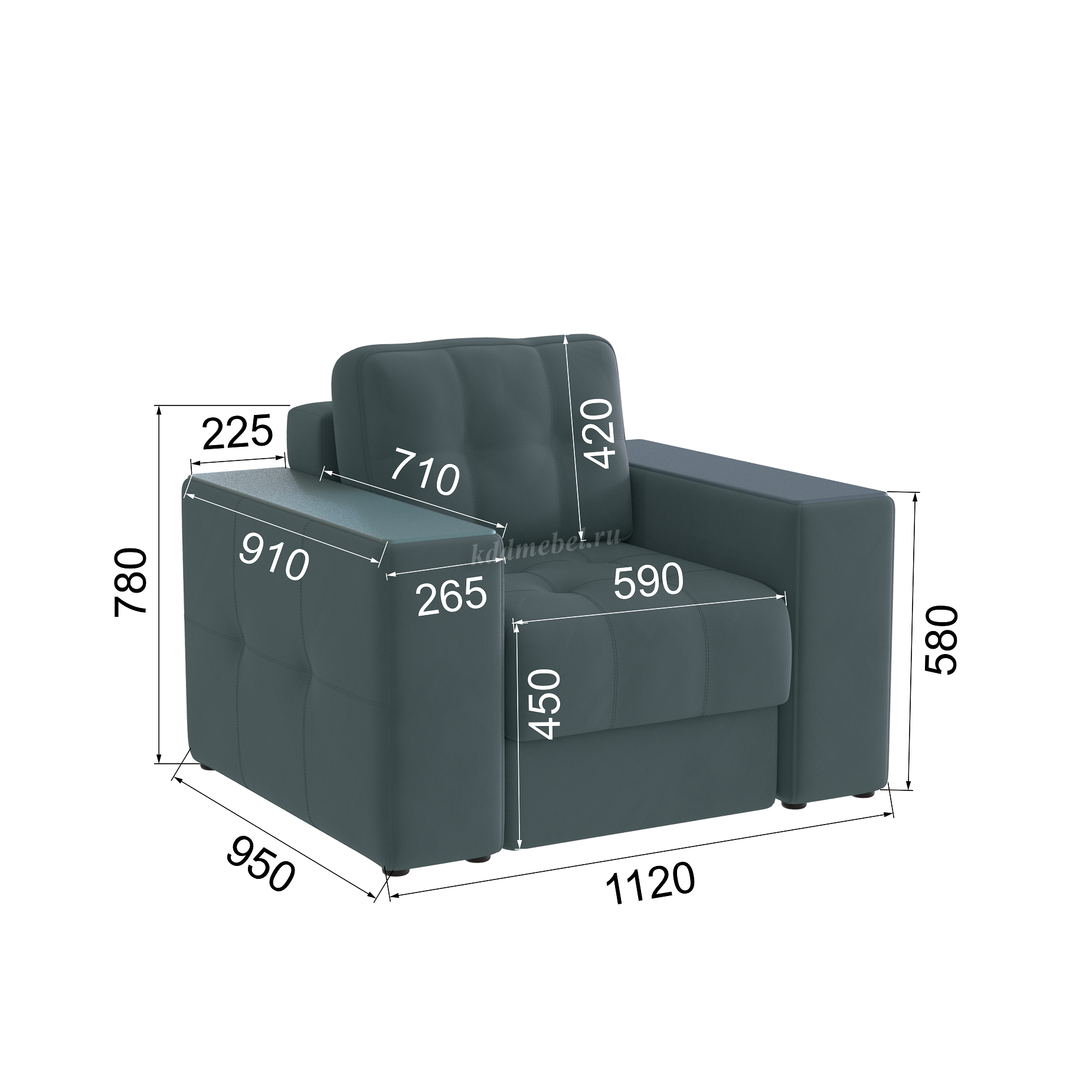 Подлокотники шириной 265 мм, обтянутые тканью и простеганные двойной отделочной декоративной строчкой.