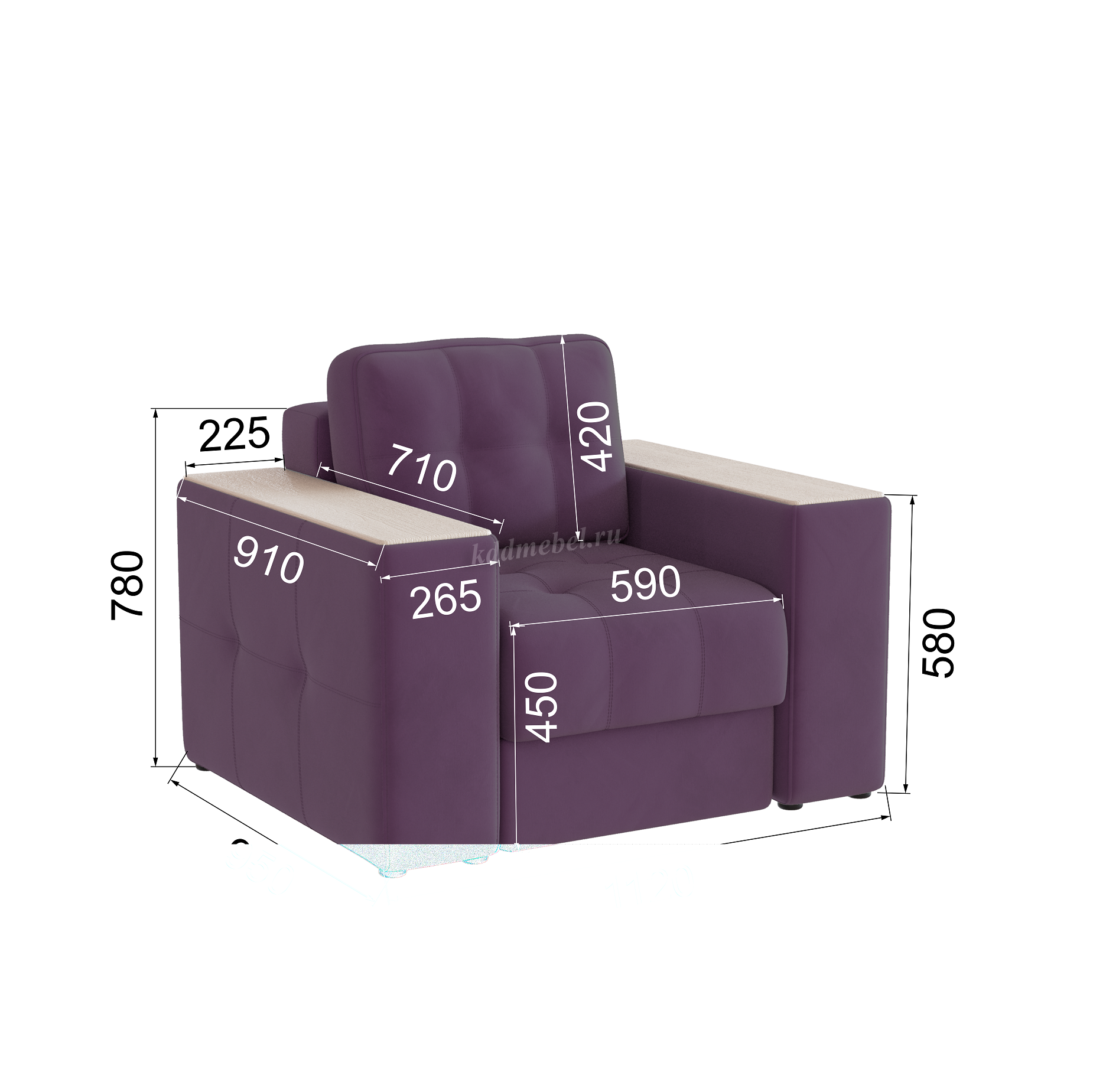 Подлокотники шириной 265 мм, обтянутые тканью и простеганные двойной отделочной декоративной строчкой.