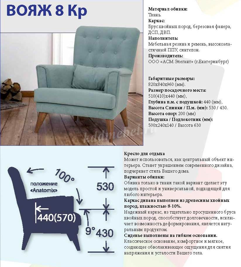 Может использоваться, как центральный объект интерьера при условии дополнительного заказа задников из обивочной ткани. Станет украшением современного дизайна, подчеркнет стиль Вашего дома. Обивка только в ткани (искусственная кожа возможна только на цоколе) такой вариант сделает эту модель простой и универсальной, подходящей для любого интерьера. Посадочное место: пружины "змейка", листовой ППУ, синтепон. Размер посадочного места: 510(410)*440 (мм.) , глубина п.м. с подушкой: 440 (мм). Высота спинки/ П.м. (мм): 530/430.